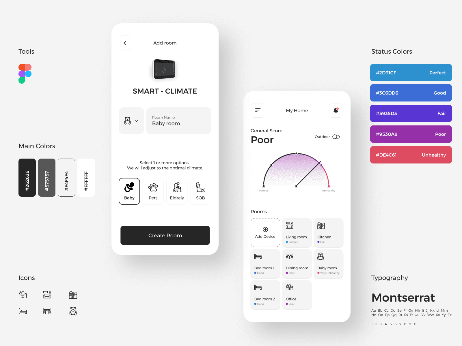 Smart Climate is a concept app for monitoring and optimizing indoor climate conditions, designed to improve air quality, comfort, and well-being.